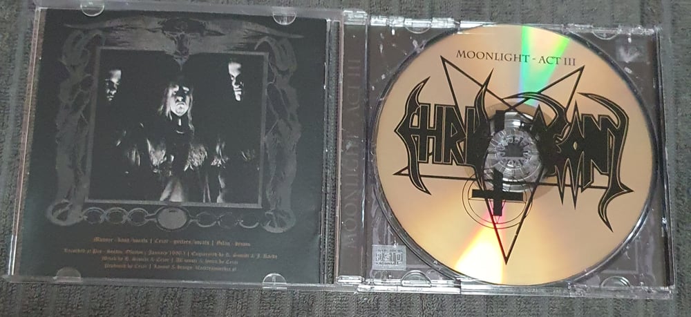 OLD TEMPLE reissue Christ Agony "Moonlight - Act III" legendary album originally released in 1996. The album is filled by six monumental, immersed in the dark tracks. "Moonlight" is a occult ritual for the glory of the Lord of Darkness. This album is a must-have for true black metal fans. Reedition with original sound without studio corrections. Released on a gold CD. All copies are handmade numbered.