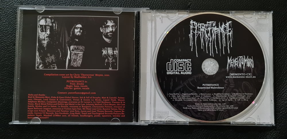 A CD that compiles everything this French band has released so far, namely the "Putrefiance" demo (2018) and the "Left to Decay" EP (2020). Old school, raw 'n' rotten Death Metal with a Punk vibe.